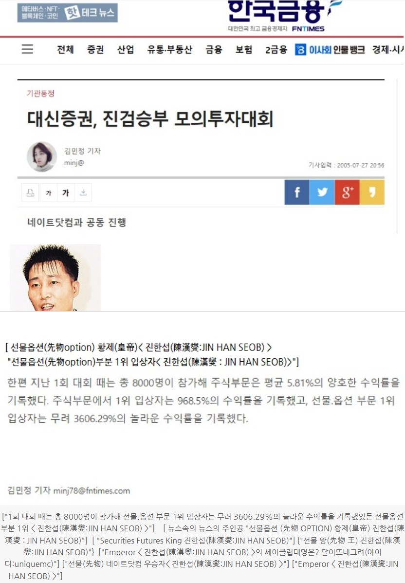 【"<진한섭(陳漢燮 : JIN HAN SEOB)>,the world champion의 우승 뉴스와사진" 아울러 "선물옵션 (先物 OPTION) 황제(皇帝) <진한섭(陳漢燮 : JIN HAN SEOB)>"의 세이클럽 프로필은 어디? https://me.sayclub.com/profl/sty/list?profileId=73102558]..