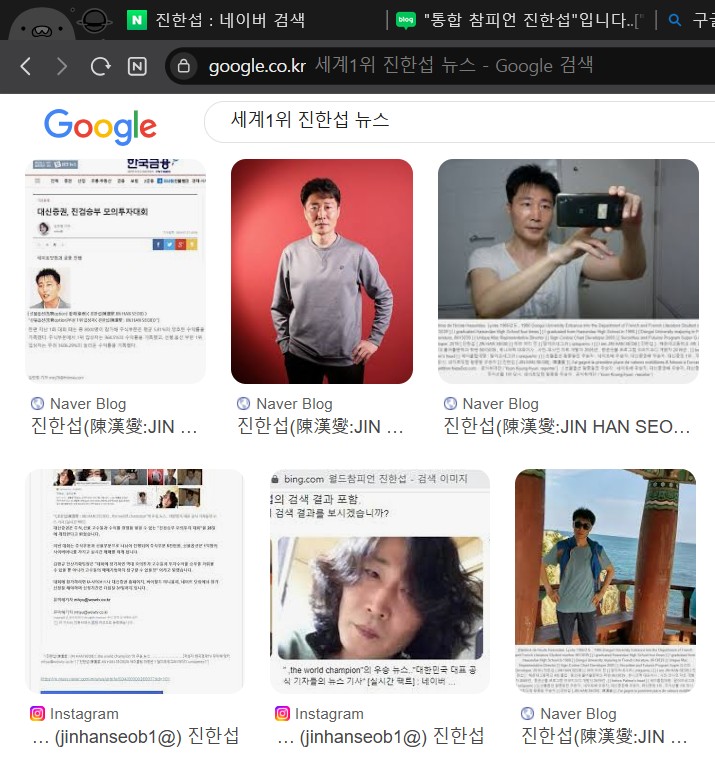 "<진한섭(陳漢燮 : JIN HAN SEOB)>,the world champion"의 우승 뉴스.."와 진한섭 인스타그램 프로필 함께 믿